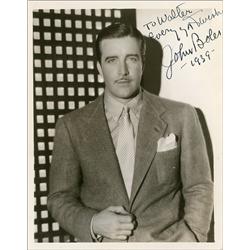 Vintage glossy 8 x 10 photo of Boles in a suit and tie, signed and inscribed in fountain pen “To Walter, Every good wish, John Boles 1939.” Light crea
