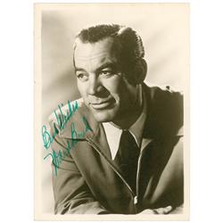 Vintage matte-finish 5 x 7 publicity photo, signed in green ink “Best Wishes, Ward Bond.” Some scattered creasing, otherwise fine condition.