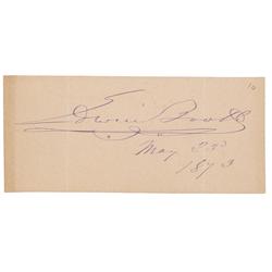 Vintage fountain pen signature, “Edwin Booth. May 23d, 1873,” on an off-white 5 x 2.25 slip. In fine condition, with two vertical folds passing throug