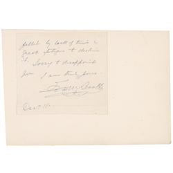 Partial ALS, one page, 4.25 x 4, December 11. Conclusion of a longer letter. In full: “filled by lack of time & great fatigue to decline it. Sor...
