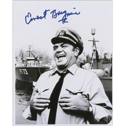 Satin-finish 8 x 10 photo of Borgnine as Quinton McHale, signed in-person in blue felt tip. In very fine condition.