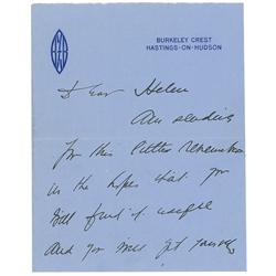 ALS signed “Billie Burke Ziegfeld,” three pages on two adjoining sheets, 6 x 7.5, Burkeley Crest letterhead, no date. Letter to Helen. In part: “Am se