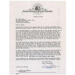 DS, one page, 8.5 x 11, October 18, 1950. Agreement between MGM Pictures and Capra, where the studio has purchased a story written by Capra entitled P