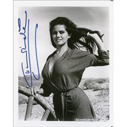 Tantalizing glossy 8 x 10 photo of Cardinale in the desert, signed vertically in blue felt tip. In very fine condition.