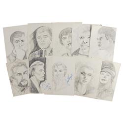 Ten original pencil sketches, all done by an admirer, ranging in size from 7.5 x 10.5 up to 9 x 12, each signed in ink or felt tip by the respective c
