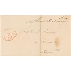 Full free frank, measuring 12.75 x 8 unfolded, with franked panel measuring 5.25 x 3.5, addressed by Adams to “Gerrit Smith Esq., Peterborough, New Yo
