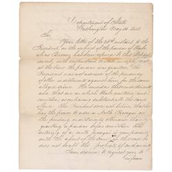 LS as secretary of state, one page both sides, 8 x 10, May 30, 1846. Letter to Benjamin F. Butler, the US District Attorney of New York. In full: “You
