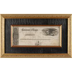 Corcoran & Riggs bank check, 8 x 3.25, filled out and signed in another hand, payable to Hon. James Buchanan for $11,000.00, February 7, 1850. E...
