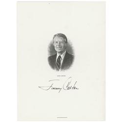 Engraved portrait of Carter, 6 x 8, by the Bureau of Engraving and Printing, signed in black felt tip. In fine condition.