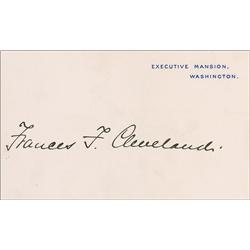 Signed Executive Mansion card, boldly signed in black ink, “Frances F. Cleveland.” In fine condition, with a bit of scattered light toning and soiling