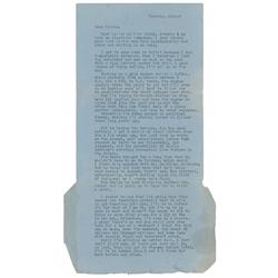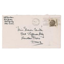 TLS signed “Bill,” one page both sides of an integral air mail envelope, 5.75 x 12.5, no date, but postmarked May 20, 1970. Letter to Sharon Caudle. I