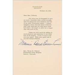 TLS, one page, 6 x 9.25, White House letterhead, October 23, 1956. Letter of thanks to Mrs. Byron M. Pollock. In part: “You were ever so thoughtful to