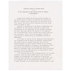 Souvenir typescript, signed “Gerald R. Ford,” two pages, 8.5 x 11, Headed as the original, “Granting Pardon to Richard Nixon By the President of the U