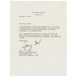 TLS as president signed “Jerry Ford,” one page, 6.75 x 8.75, White House letterhead, February 5, 1975. Letter to a collector. In full: “I understand t