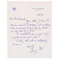 ALS signed “Jerry Ford,” one page, 7 x 9, Vice President letterhead, January 19, 1974. Letter to Mr. Darvick. In full: “Your letter of Dec. 13th has b