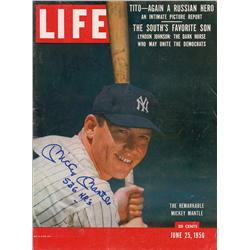 Life magazine, dated June 25, 1956, featuring a young Mantle on the cover, signed on the cover in blue felt tip, “Mickey Mantle 536 Hr’s.” Scattered c