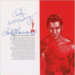 Program page removed from the 1969 3rd Annual Sportsmens World Awards program, 11 x 11, featuring an image and biography of Marciano, signed and inscr