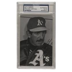 Matte-finish 3.5 x 5.5 photo of Martin while managing the Oakland A’s, signed in black ink. Encapsulated in a plastic PSA/DNA authentication holder. I
