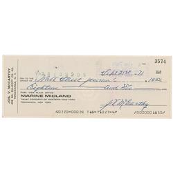 Personal check, 8.25 x 3, filled out and signed by McCarthy “J. V. McCarthy,” payable to Wall Street Journal for $18.50, September 21, 1971. A central