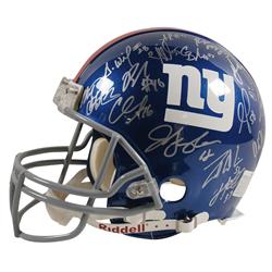 Official limited edition Riddell NY Giants football helmet, #283/300, signed in silver ink on the sides by 34 members of the Super Bowl XLII champion