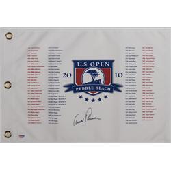 Souvenir 2010 US Open Pebble Beach golf flag, 19 x 13, with all the winner’s names embroidered on the front, signed in black felt tip on the front. In