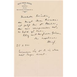 Hungarian-born Austrian founder of Zionism (1860–1904). ALS in German, signed “Herzl,” one page, 5.75 x 8.75, Neue Freie Presse letterhead, circa Dece