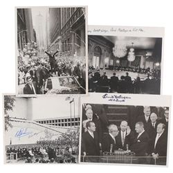 Four original matte-finish press photos of historic events, 8 x 10 and 10 x 8, signed in ink by the participants, including images of the Paris meetin