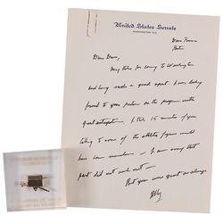 ALS signed “Bobby,” one page, 6 x 8, US Senate letterhead, February 27, 1968. Letter to Dave Powers. In part: “Many thanks for coming to Washington an
