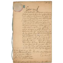 Historically significant manuscript DS, signed “George R,” one page, 7.5 x 12, September 4, 1722. King George orders Thomas Earl of Macclesfield, Chan