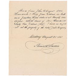 California businessman (1802–1858) who served as the only US consul to Mexican Alta California. ADS, one page, 6 x 8, August 30, 1841. Handwritten rec