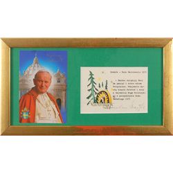 TLS in Polish, signed “Karol Card Wojtyla,” one page, 5.25 x 3.5, Nativity-themed letterhead, 1971. Letter of thanks and Christmas wishes. In full (tr