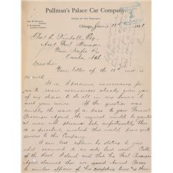 LS signed “Geo. W. Pullman,” two pages, 7.75 x 10.25, Pullman’s Palace Car Company letterhead, January 18, 1881. Letter to a general manager at Union