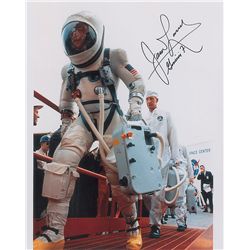 Desirable official color semi-glossy 8 x 10 ‘red-numbered’ NASA photo of Stafford in his white space suit, signed in black felt tip. In fine condition