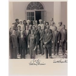Glossy 8 x 10 photo of the Mercury astronauts posing outside the White House with President John F. Kennedy and Vice President Andrew Johnson, signed