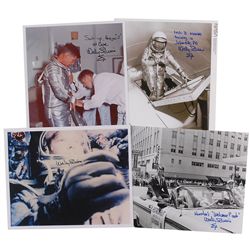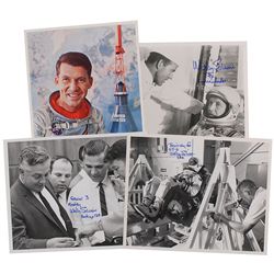 Four photos of Schirra from his Mercury and Gemini missions, various finishes, including an official color 8 x 10 NASA lithograph, each signed in felt