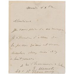 French painter and sculptor (1901–1985) known for his authentic and humanistic approach. TLS in French, one page, 5.25 x 8.25, August 19, no year but