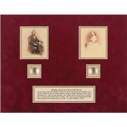 Several strands of hair from both Abraham and Mary Todd Lincoln. Strands are housed in small magnified plastic cases and are double-suede-matted with