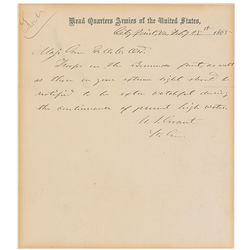 Civil War–dated ALS signed “U. S. Grant, Lt. Gen.,” one page, 7.5 x 8.5, Head Quarters Armies of the United States letterhead, February 25, 1865. Hand