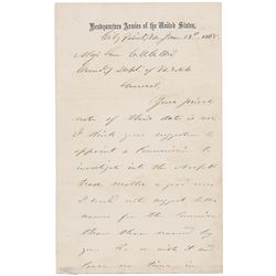 Civil War–dated ALS signed “U. S. Grant, Lt. Gen.,” two pages, 5 x 8, Headquarters Armies of the United States letterhead, January 19, 1865. Letter to