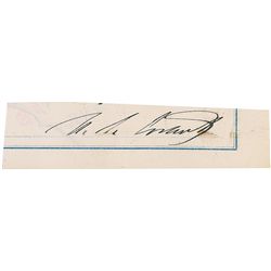 Ink signature, “U. S. Grant,” on an off-white 3.25 x .75 clipped slip. In fine condition, with a slight brush to the end of the signature.