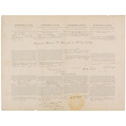 Partly-printed DS as president, signed “R. B. Hayes,” one page, 22 x 17, November 20, 1877. Four-language ship’s papers issued to “Jetur R. Rogers mas