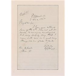ALS signed “R. B. Hayes,” one page, lightly-lined, 5 x 7.75, December 7, 1875. Letter to A. Hart of Cleveland. In part: “I am not yet prepared to anno