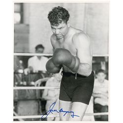 Glossy 8 x 10 photo of Dempsey training in the ring, signed in blue felt tip. In fine condition.