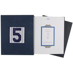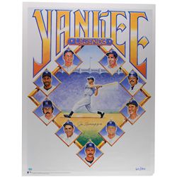 Color limited edition 25 x 32 print entitled Yankee Legends, numbered 611/1941, signed in blue felt tip by DiMaggio. Some creases and edge dings, most