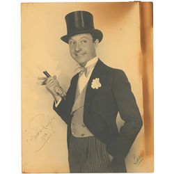 Vintage matte-finish 10.5 x 13.5 photo of Pangborn in his typically dapper attire, signed in fountain pen, “Franklin Pangborn, 1933.” Also bears the p
