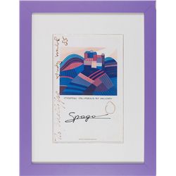 Color 8.5 x 11 print of the poster for his Constellations exhibition, signed in the lower border in black ink, “Miro.” In fine condition.
