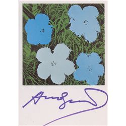 Color 4 x 5.75 postcard of Warhol’s 1964 work ‘Flowers,’ signed in the lower border in blue felt tip. In fine condition, with a bit of subtle haloing