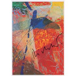 German artist (born 1932) whose works have achieved world-record prices at auction. Color 4 x 5.75 postcard of Richter’s work entitled ‘Aetna I,’ sign