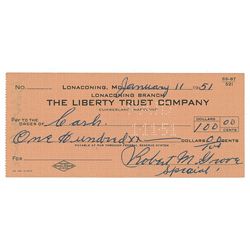 Choice bank check, 6.25 x 2.75, filled out and signed by Grove, “Robert M. Grove,” payable to cash for $100, January 11, 1951, and endorsed on the rev