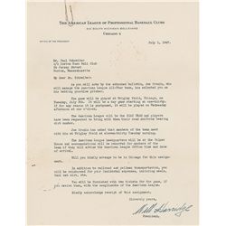 TLS, one page, 8.5 x 11, The American League of Professional Baseball Clubs letterhead, July 1, 1947. Letter to Paul Schreiber of the Boston Base Ball